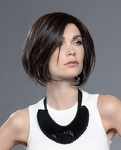 Model Adore to peruka z włosów mieszanych (włosy naturalne remy + włosy syntetyczne o podwyższonej odporności na ciepło) utkanych na bazie, którą charakteryzuje wykonanie maszynowe na tresach, mikroskóra na linii przedziałka oraz linia rozmyta z przodu.