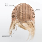 Model Casino More to peruka z włosów syntetycznych utkanych na bazie, którą charakteryzuje wykonanie maszynowe na tresach, mikroskóra na linii przedziałka oraz linia rozmyta z przodu. Specjalne włókno syntetyczne doskonale imituje prawdziwe włosy.