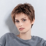 Model Chat to peruka z włosów syntetycznych o podwyższonej odporności na ciepło utkanych na bazie, którą charakteryzuje wykonanie maszynowe na tresach oraz linia rozmyta z przodu. Specjalne włókno syntetyczne doskonale imituje prawdziwe włosy.