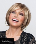 Model East Luxury to peruka z włosów syntetycznych o podwyższonej odporności na ciepło utkanych na bazie, którą charakteryzuje wykonanie ręczne na tiulu, mikroskóra na górnej części głowy oraz linia rozmyta z przodu.