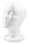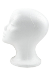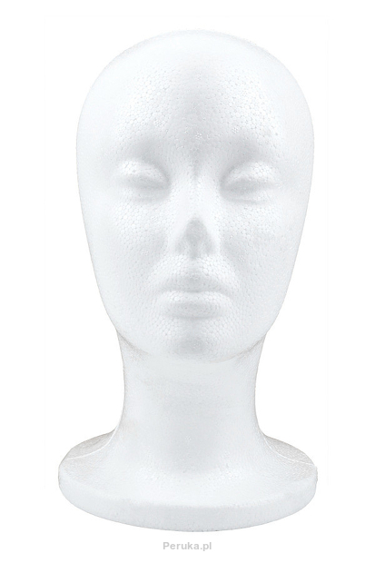Biała styropianowa główka przeznaczona do ekspozycji peruk oraz nakryć głowy.