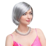 Peruka syntetyczna bob z bocznym przedziałkiem siwa z odrostem HOLLY 66/101/8R