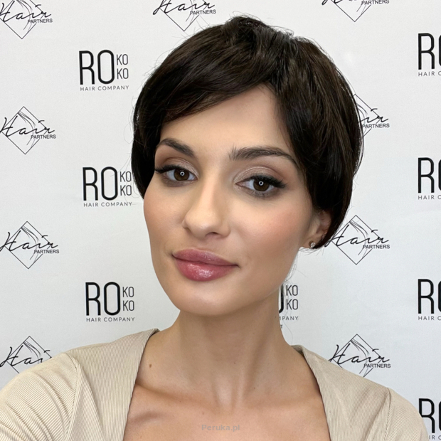 Całość po umieszczeniu na głowie trzyma się wystarczająco mocno, aby nie martwić się o przesuwanie czy spadnięcie tej półperuki z włosów syntetycznych. Końcowym efektem, jaki pozwala uzyskać model Iris, jest naturalny wygląd z pięknymi, krótszymi i elegancko ułożonymi włosami, a wszelkie ubytki kosmyków na górze głowy momentalnie zostają zasłonięte.