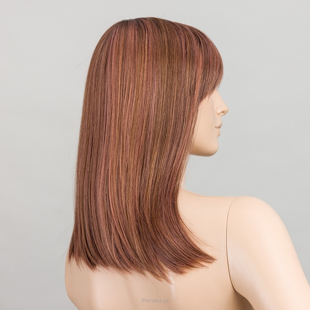 Długa damska peruka syntetyczna termoodporna z gęstą prostą grzywką średni brąz z różowymi refleksami JACKY rosewood rooted