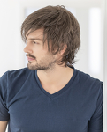 Peruka męska Johnny to model z włosów syntetycznych utkanych na bazie, którą charakteryzuje wykonanie maszynowe na tresach, mikroskóra na linii przedziałka oraz linia rozmyta z przodu. Specjalne włókno syntetyczne doskonale imituje prawdziwe włosy.