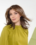 Model Luna to peruka z włosów syntetycznych o podwyższonej odporności na ciepło utkanych na bazie, którą charakteryzuje wykonanie maszynowe na tresach, mikroskóra na czubku głowy oraz linia rozmyta z przodu. Specjalne włókno syntetyczne doskonale imituje prawdziwe włosy.