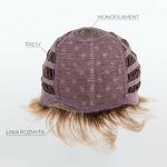 Model Mare to peruka z włosów syntetycznych utkanych na bazie, którą charakteryzuje wykonanie maszynowe na tresach, mikroskóra na czubku głowy oraz mini linia rozmyta z przodu. Specjalne włókno syntetyczne doskonale imituje prawdziwe włosy.
