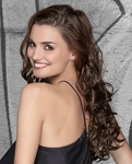 Modelka ma na głowie dopinkę w kolorze light brown.