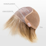 Peruka z włosów syntetycznych termoodpornych do 130°C Sparkle Deluxe ma bazę, którą charakteryzuje wykonanie ręczne na tiulu wraz z mikroskórą na górnej części głowy oraz linią rozmytą nad czołem.