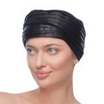 Amy Black to cieplejszy turban o klasycznym kroju, który nie potrzebuje dodatkowej stylizacji po założeniu na głowę. Bambusowy materiał podszewki jest elastyczny i oferuje niezbędny komfort nawet po wielu godzinach noszenia. Ukośne rozmieszczenie pasm materiałów na zakładkę sprawia, że turban po założeniu na głowę wydaje się być większy, niż jest w rzeczywistości.