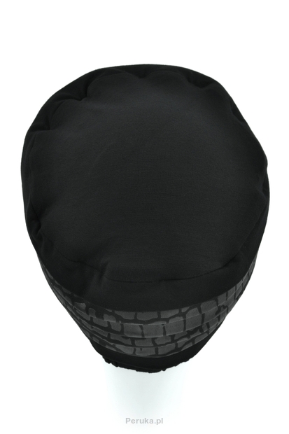 Elegancki czarny turban z ozdobną przeplataną tkaniną z nadrukiem AMY BLACK*