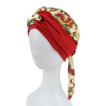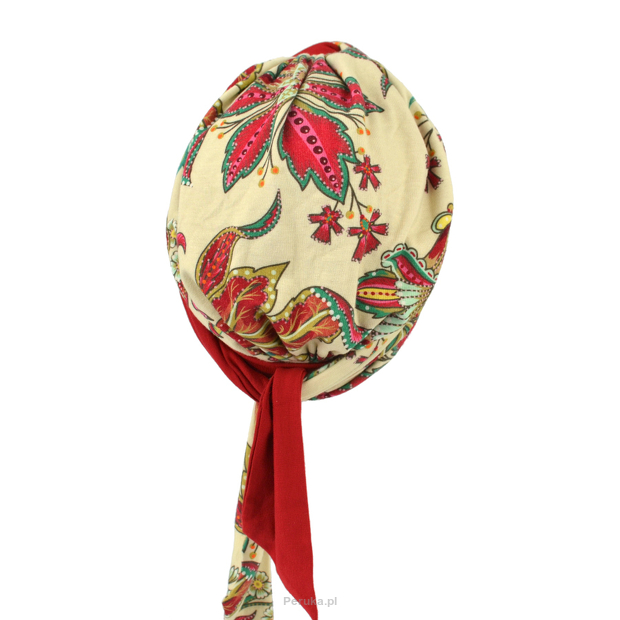 Turban dwustronny kremowo czerwony wzory LEAH BM214/BM386