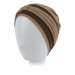 Turban Nicola to kilkuczęściowy zestaw, który składa się z lekkiego czepka oraz dwóch ozdobnych opasek z metalową klamerką z przodu.