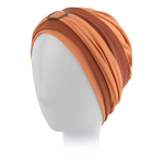 Turban Nicola to kilkuczęściowy zestaw, który składa się z lekkiego czepka oraz dwóch ozdobnych opasek z metalową klamerką z przodu.