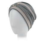 Kilkuczęściowy zestaw turban oraz dwie ozdobne opaski z metalową klamrą szary NICOLA B44