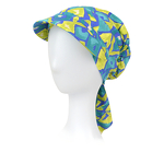 Turban z daszkiem i wiązaniem z tyłu turkusowo granatowo żółty wzór PALERMO Q-404