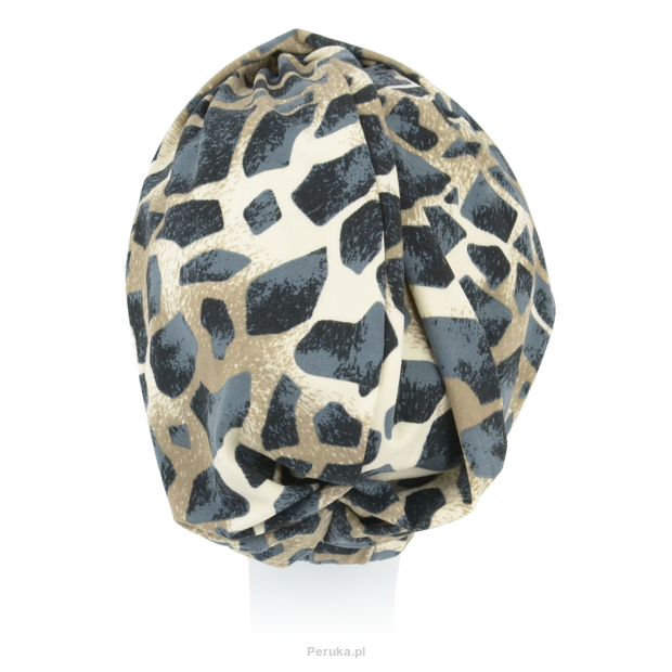 Zwarty turban pozwalający na ułożenie luźnych drapowań tak, aby wizualnie zwiększyć jego objętość po założeniu na głowę. Wyrazisty wzór z połączeniem beżów i szarości nadaje charakteru, a dzięki większemu kontrastowi barw, Stone będzie odpowiedni dla nieco odważniejszych stylizacji.