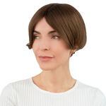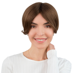 Topper Uni w odcieniu jasnego brązu z ciepłymi refleksami to idealne rozwiązanie dla osób, które chcą subtelnie zagęścić fryzurę i dodać jej naturalnej objętości. Doskonale sprawdza się przy przerzedzeniach w górnej części głowy, szczególnie w miejscuu przedziałka.